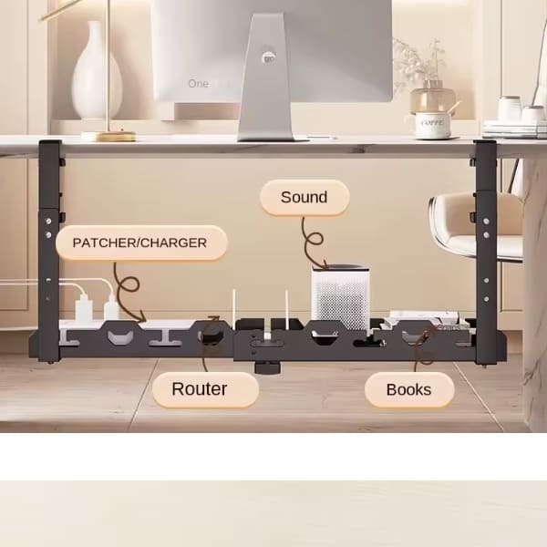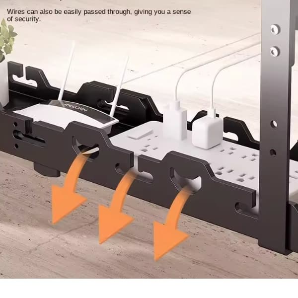 This rack is designed with modern homes and offices in mind. Whether you’re working remotely, gaming, or simply setting up a productive study space, it provides a simple yet effective solution to organize cables, adapters, and power strips out of sight.