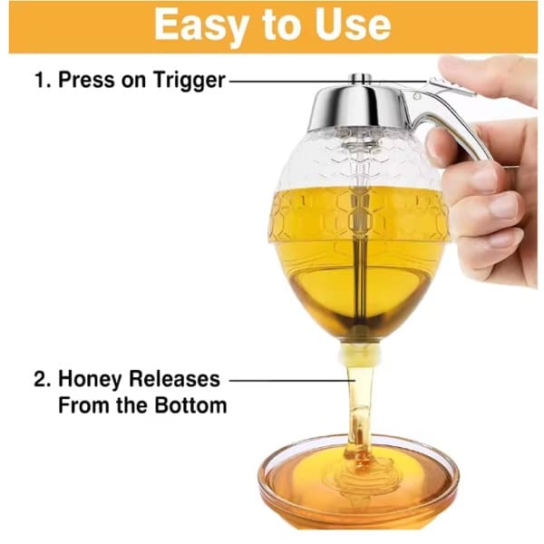 This 200ml (approximately 10oz) honey dispenser offers ample capacity for honey, maple syrup, chocolate syrup, or other liquid condiments. Using it is simple: