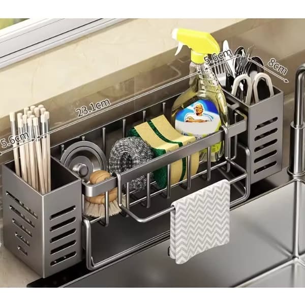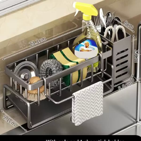 The sink caddy is more than just a sponge holder – it’s a versatile storage rack that works for all kinds of cleaning essentials. From rags and dishcloths to scrubbers and soap, it helps streamline your daily kitchen cleaning routine .