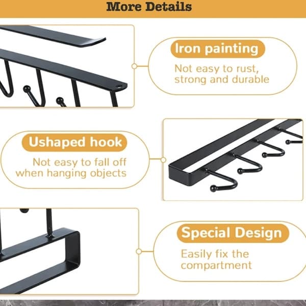 One of the best features of this mug hooks under shelf is its installation method. Forget about drills, nails, or damaging your cupboards. The hooks are designed to slide securely onto shelves with a thickness of up to 2.3 cm. Simply position the rack under a cabinet or shelf, and it’s ready to use instantly. This punch-free installation makes it portable, reusable, and ideal for renters or anyone who prefers not to alter their furniture permanently.